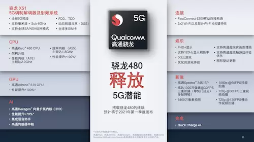 据悉,首批搭载骁龙480 5G移动平台的商用终端预计将于2021年早些时候面市。