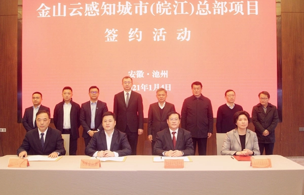 2021年1月4日,作为池州市人民政府与金山云已签署的战略合作协议的具体落地,金山云与皖江江南新兴产业集中区管委会、池州市数据产业有限公司、池州市数据资源管理局正式签署落地合作协议,金山云感知城市(皖江)总部落地池州,在此基础上,四方将合力打造数字池州技术有限公司,共同建设辐射皖江、长三角地区的集创新创业、科技孵化、商务办公为一体的数字经济产业园,为池州培育数字产业链,推动新一代信息技术向政府服务、城市运行、数字产业发展等各领域深度渗透,实现“产业池州”和“数字池州”的融合,共同打造皖江地区“技术、产业、资本”三位一体的新兴产业新高地,为池州市及皖江地区的持续健康发展注入新动能。会上还举行了金山云感知城市(皖江)总部揭牌仪式。