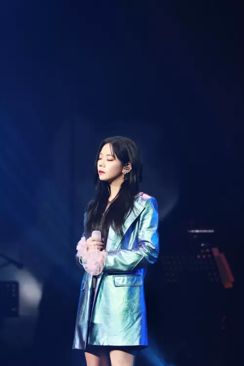 ↑紫宁佩戴1MORE为其特别定制的时尚耳返,Bling-Bling闪亮耀眼