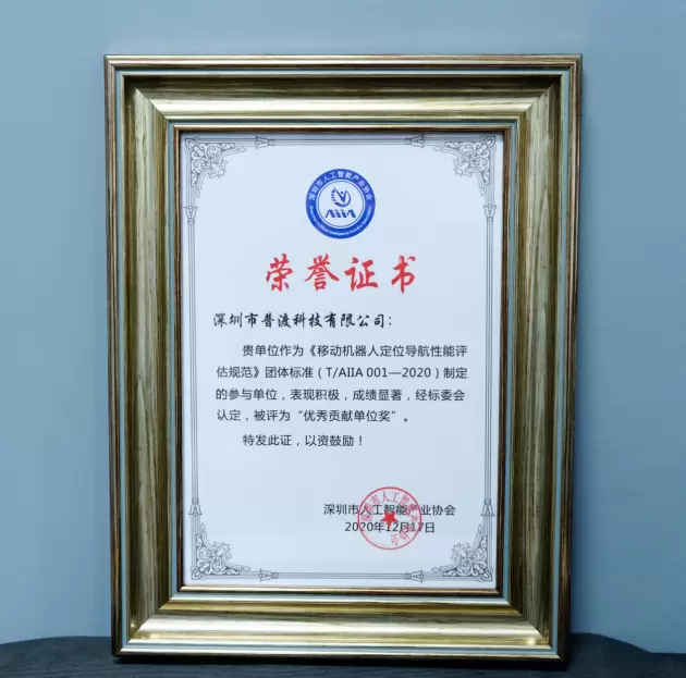 近日,由福田区人才服务联盟单位深圳市人工智能产业协会主办的2021人工智能技术创新系列高峰论坛——服务机器人产业及应用研讨会暨《机器人自主定位导航技术规范》团体标准发布仪式在深圳圆满举办。会上隆重表彰了制定团体标准中作出贡献的单位和个人,普渡科技作为《移动机器人定位导航性能评估规范》团队标准制定的重要参与单位,成绩显著,被评为 “优秀贡献单位奖”。