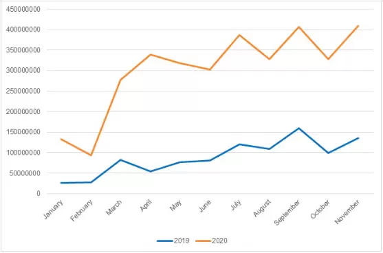 RDP攻击动态,2019年1月-11月 vs2020年1月-11月