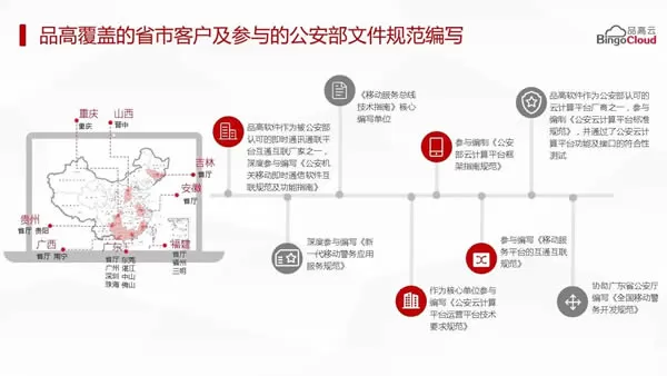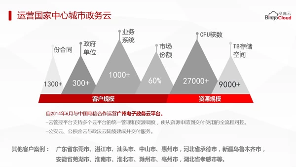 在国家宏观政策指引下,品高云积极与产业上下游展开合作,已经为包括广州市、惠州市、东莞市、中山市等地提供在线电子政务与信息化云服务,多数项目已持续稳定运营 5 年以上。
