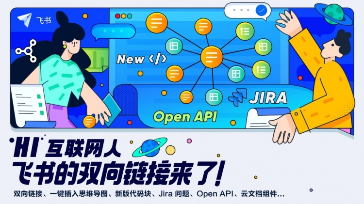该系列功能是在此前上线的“程序员友好”系列功能上的升级,新增了用户可在飞书文档中直接插入能识别超过50种编程语言的新版代码块,支持通过 Open API 创建、编辑文档,以及让开发者在任何第三方系统中嵌入文档的云文档组件等。同时,思维导图、双向链接等新公布的功能,也都集合在了“互联网人友好”系列功能中。