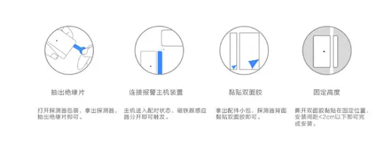 门磁开关感应器和磁条背侧有3M强力双面胶,分别粘贴在门和门框上,无需任何工具,无需布线,安装难度为零,产品配备了可拆换860mAh的锂锰电池,电量可以维持1000次开启,如果一天开启3次的话,续航时间可以长达一年。