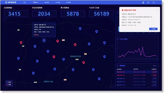 5、系统24小时无缝管控,解决一-线人员疲劳值班,降低感染风险。