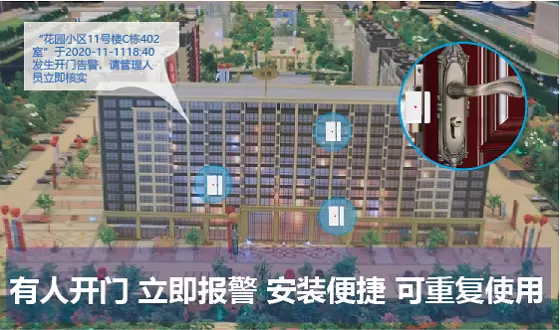 相比传统的封条,门磁报警器少了些简单粗暴,对被隔离人员更加尊重,同时也让防控人员的监控管理工作更便利更高效。