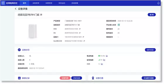 目前采用NB物联网卡,在WEB云管理平台上实现了设备的集中管理、批量配置、市区县街道层级、统计分析、数据集中收集和状态的实时查询等管理,为防疫大数据追踪做好了统计,已对接各大集成商云平台。
