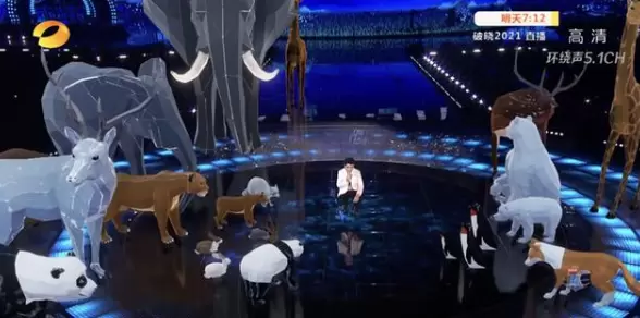 今年湖南卫视跨年演唱会舞美设计的主题是“未来之城”,为了给观众带来最佳视听体验,团队首次将虚拟现实应用到直播现场实现全覆盖,突破性使用AR技术缔造虚拟的未来城市,拓展了灯光、舞美和led屏幕在大型露天场地营造氛围的上限,延展观众视觉边界,同时AR的虚拟舞美和实体舞美互相融合,打造多维沉浸空间。例如朱一龙在演唱《后会无期》时和AR动物们进行互动。