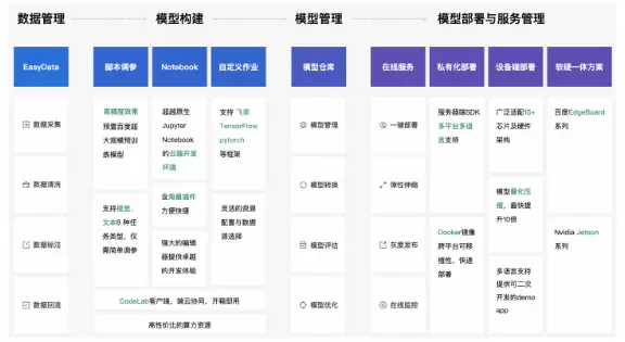 全功能AI开发平台BML(Baidu Machine Learning),是为企业和个人开发者提供机器学习和深度学习一站式AI开发服务,并提供高性价比的算力资源,助力企业快速构建高精度AI应用。BML提供了从数据采集、数据清洗、数据标注、智能标注与多人标注、模型训练生产到模型管理、云端及离线推理服务管理等AI开发过程的全生命周期管理功能。