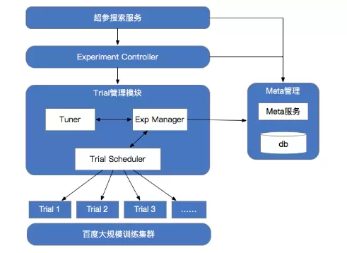 3.Trial是具体的训练试验,一个Experiment会产生多个Trial来探索不同超参数组合的最终效果。Tuner是超参生成的模块,会根据选择的超参搜索算法,推荐下一个Trial所使用的超参值。在Trial管理模块中,Exp Manager会负责生成若干Trial,向Tuner请求具体的试验超参数,并向Trial Scheduler发送Trial任务信息。