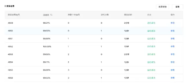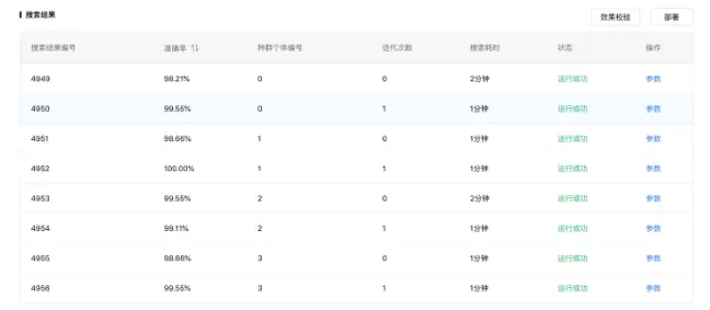 3.超参搜索训练完成后,效果最优的5次试验可以看到详细的评估结果,也能用于后续的效果校验和发布。当然,如果在超参搜索时对数据进行了采样,这时候可以重新发起一次训练任务,用这次搜索出来效果满意的超参数进行全量数据训练,从而获得完整数据的模型效果。