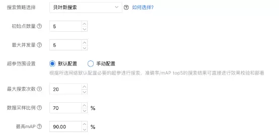 【最大搜索次数】:是指最多组合出多少组超参并跑试验,当然有可能会因为提前达到目标而停止,节约费用。