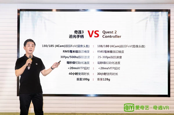 奇遇VR是国内首家推出CV头手6DoF交互方案的厂商,爱奇艺智能CTO王西颖博士表示,“‘追光’对于下一代VR一体机来说,是一次里程碑式的技术升级。该方案采用完全自主研发模式,整个过程充满艰辛和坎坷。经历25个月的连续攻坚,追光方案成功实现了毫米级精准定位,以及毫秒级的延时速度等苛刻的技术指标。该技术方案在追光手柄的产品落地过程中,实现核心参数追平Quest2,并在一些特定领域如待机时长、功耗、重量控制实现了超越。”