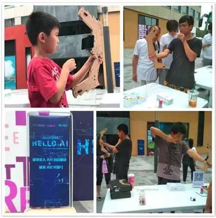 就在 AI 大巴的车头,这家名为“深圳极贝科技有限公司”(Geekplay)所展示的增强现实技术(AR)游戏硬件吸引了笔者的眼球。据极贝员工介绍,他们所有的产品都是以硬件结合手机app使用的游戏模式,只需要将app与硬件通过蓝牙匹配就可以进入游戏体验。
