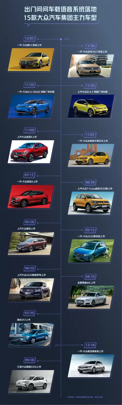 出门问问在2020年交付了亮眼的车载战绩。出门问问车载语音系统应用于奥迪A4L、帕萨特、新迈腾、大众ID.4 CROZZ等 15 款大众汽车集团的主力畅销车型,2020年实现近百万辆车规级车载前装落地。预计2023年达到千万级规模。