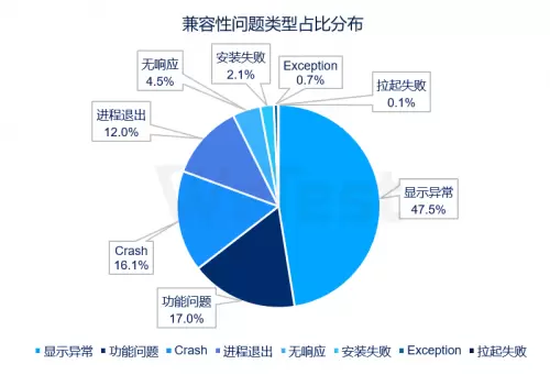 通过腾讯WeTest平台上的2020年测试数据显示:平均每次测试中就会发现17.4个问题,为在产品上线前能给用户带来良好的体验,对产品进行兼容性测试尤为重要。在测试数据中,显示异常、功能问题、Crash类问题突出,占所有测试兼容性问题的80.63%。显示异常问题占比相较去年增加11% 。其中异形屏类、画面未铺满、文字异常、按钮异常等问题占比均有所提高。