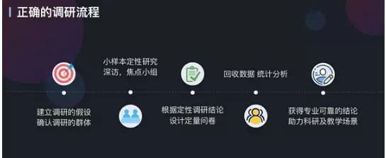在调研之初,基于对调研主题的充分理解,网易定位帮助教师建立调研的假设,确认调研的群体。接着,在设计调研问题时,网易定位通过“5W1H”模型,将杂乱无章的问题按照“谁在哪做什么,怎么做,以及为什么这样做”进行逻辑梳理,帮助教师在问题设计时查漏补缺。在制作问卷时,网易定位提供免费的问卷编辑平台,内置海量的专业模版方便教师一键引用。然后将问卷通过系统对确认好的调研群体进行分发。获得反馈后,网易定位可自动回收问卷并进行数据整理,并基于实时的运算分析输出多维可视化图表。此外,网易定位的专家团队还可根据分析结果进一步给出策略分析和建议,让调研结果更好地应用到实践中。