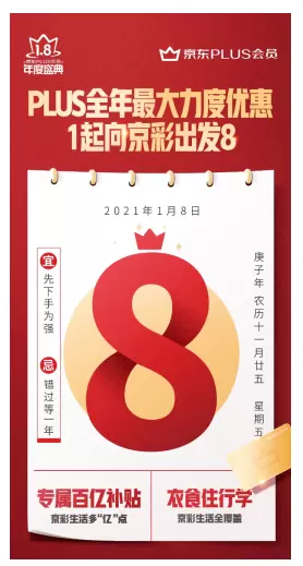 2021年京东PLUS会员年度盛典,1月8日,1起向京彩出发8!