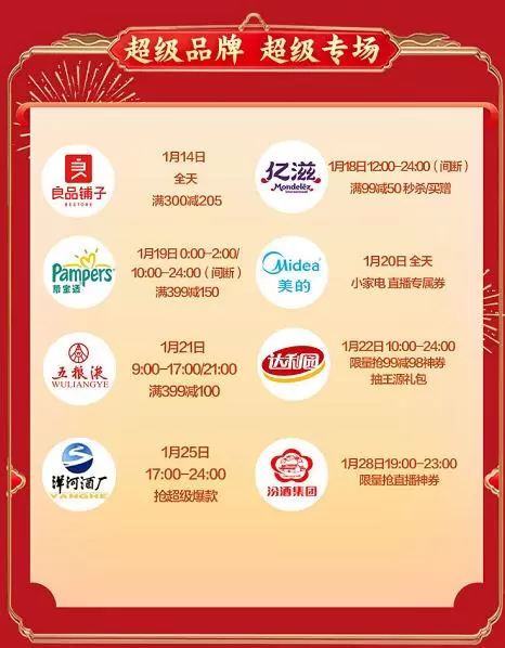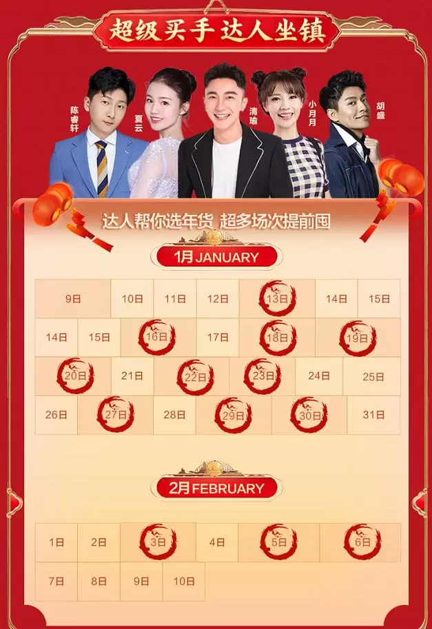 除了贾乃亮和王祖蓝会空降苏宁年货直播间,在1月13日-2月6日期间,更有清瑜、小月月、夏云等超级买手达人不间断坐镇,为粉丝共同寻觅年货好物。特别是在1月20日腊八节当天,据内部人士称"错过腊八直播,可能后悔一年",苏宁将在直播中拿出年货节最大价格优惠和压舱好货,冲击抖音带货纪录。