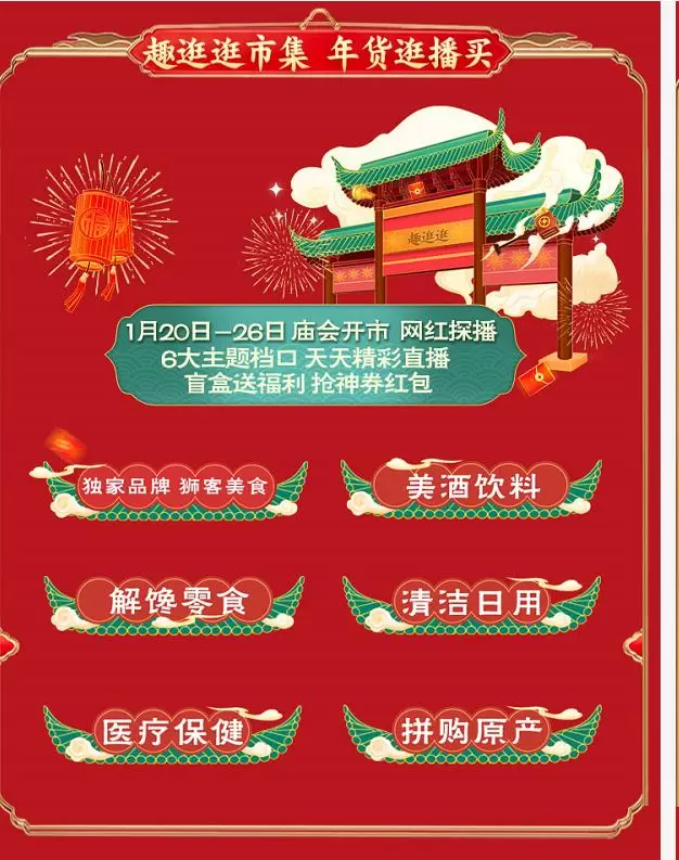 除了直播间的年货好物,苏宁在1月20日-26日,还开启了网红逛庙会的活动。让粉丝们云逛集市买年货,更有盲盒福利、神券红包等各位来抢。赶紧告诉身边的小伙伴,薅上苏宁年货直播的这把羊毛吧!异乡寻过年乡味,苏宁真有一套。
