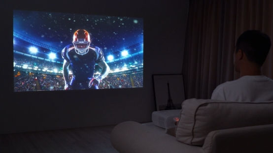 试想一下,当人们褪去白日的疲惫回到家中,可以懒在沙发上边享受美食边看球赛;夜晚,它跟随你来到卧室,躺在床上就能跟着电影主人公走遍天涯海角。它打破传统家用投影机固定吊装的模式,具备灵活移动性能,同时保持专业画质,实现高品质享受。