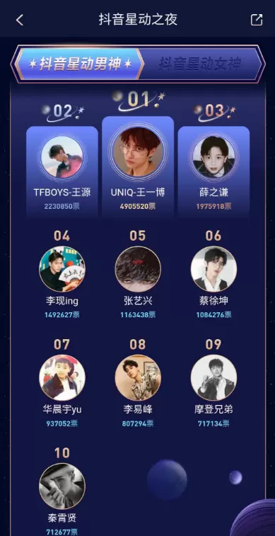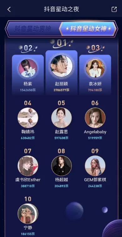 抖音星动之夜将对音乐、综艺、剧集以及电影等多领域进行荣誉颁发,3100+明星将角逐抖音授予的多项荣誉,奖项花落谁家引发期待。其中,两大年度荣誉“抖音星动男神”和“抖音星动女神”的抖音站内票选活动已在1月8日24:00结束,最终票选出来的“男神女神”王一博、赵丽颖或将在盛典上接受年度荣誉。