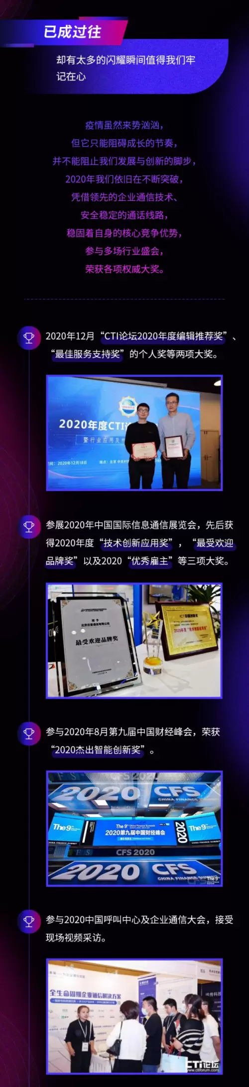 ·参展2020年中国国际信息通信展览会,先后获得2020年度”技术创新应用奖”,”最受欢迎品牌奖”,以及2020”优秀雇主”等三项大奖。