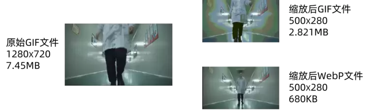 在不做缩放的情况下,转换为WebP动图节省50%+空间。而对于带缩放的场景,WebP动图节省空间更突出。