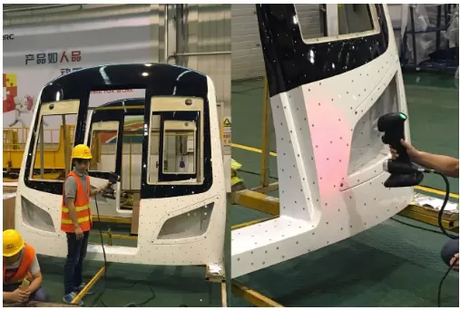 模具是地铁生产的环节之一,地铁车头的大体制作流程分为设计→模具→生产加工→组装,地铁制造商需要通过对车头模具的三维扫描,得到模具的三维测量数据,与原始数模进行对比,准确计算出偏差量,提高产品精度。