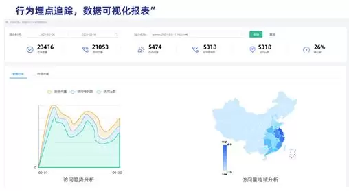 行为埋点追踪,数据可视化报表。ICC融合通信中台可将普通短信链接,升级为“智能短链”,在“一步跳转”的基础上,通过行为数据埋点,对用户各个步骤的点击、浏览、分享等行为数据进行抓取,反馈下发成功率、打开率、点击率、访问率等数据,形成可视化的数据报表,方便二次营销。