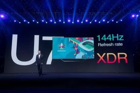 同样作为国产老牌电视厂商的海信,此次展会上推出了欧洲杯60周年定制版电视ULEDU7系列。U7系列是海信旗下主打画质的中高端产品,一直拥有比较优秀的屏幕亮度和对比度。而这次新发布的U7系列在背光技术上更进一步,采用了海信自主研发的Mini LED,支持144HZ高刷新和XDR极高动态范围。