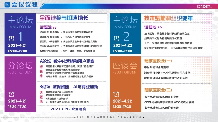 开启新篇章!CPG 2021:第六届中国消费品CIO峰会现已正式启动!