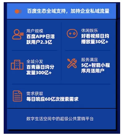 截止到目前,百度系APP用户规模已超10亿,智能小程序月活跃用户已超5亿,好看视频日均播放量可达30亿,用户社交互动量更是年同比提升60%,再加上百青藤日均内容分发量超300亿条的巨大生态优势,在流量规模上稳居头部,无论对任何行业的企业和商家而言,都是一个有价值的营销平台。