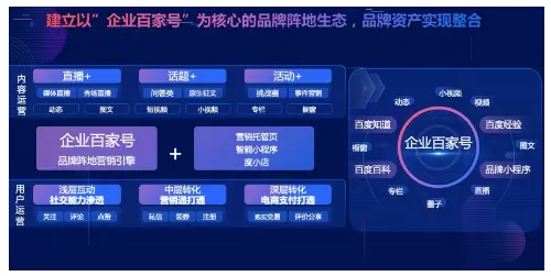 不仅如此,作为一家技术出身的企业,百度在产品布局上也做到了逻辑严密的业务承接,打造了一个完整的营销生态闭环。前端有百度搜索、推荐、问答、好看视频等诸多场景为企业百家号引流,中端有企业百家号内容页面、智能小程序做内容运营及私域流量池培育,后端度小店完成销售转化,打通了企业营销转化的全链条。