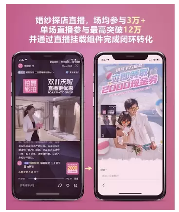 获得企业百家号「认证服务」的企业,在启动期可以通过更符合当下消费者阅读习惯的短视频、图文、直播等多样形式的内容获得百度的曝光,将其品牌传播的渗透力发挥到极致。在流量的扶持下,企业提供的内容也更容易衍化成 “爆款”。如铂爵旅拍聚焦趣味情侣旅拍场景的爆款小视频播放量高达80万+,单场直播最高甚至超过了12万,在基于对自身用户和内容的精准把控的前提下,借助百度的生态流量优势和多模块化的营销工具取得的亮眼成绩。