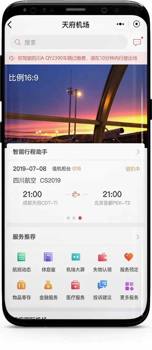 在天府国际机场范围内,支持室内室外一体化的导航。自行驾车的旅客,可以在线查看车位空余情况、在线预约车位并直接导航到停车位,并且支持反向寻车,避免记不住“车停哪儿”的情况发生。让您的整个旅程顺心无bug。