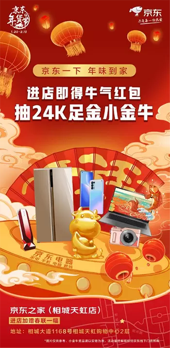 京东年货节3C家电线下福利火爆开启,下单抽24K足金小金牛手链