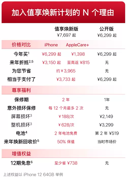 去年京东11.11全球热爱季期间,Apple授权京东成为值享焕新计划的首家线上渠道。自此,用户在京东购买iPhone12系列手机时,只要参与值享焕新计划,来年购买iPhone下一代新品即可享受原机50%折抵,如果提前换新,可按比例退还服务费用,按剩余天数折算。这样一来,消费者在节省换新成本的同时,可全面保障手机的安全使用。