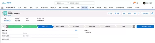 在CloudCC 10版本中,针对销售机会不同阶段,如完善信息明确BANT、项目立项、获取coach、获取决策者价值认可等,都明晰展示。销售人员针对不同阶段的目标,在完成任务后键入关键字段,如:“coach提供的痛点”“coach人选”;另有小贴士将同步引导销售人员顺利进入下一阶段。单一销售机会可分成几个阶段,无论身处优劣势,各个机会关键点都是赢单的决定因素。