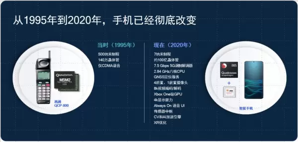 回顾移动通信行业三十多年的发展历程,可以观察到技术与应用的发展要归功于对未来的大胆设想、创新性的工程、摩尔定律带来的持续性整合,让手机的生态系统边界持续的突破。高通专家曾谈到,随着摩尔定律的发展,芯片算力不断的提升,手机一定会拥有越来越多的功能。这个规律从高通的历代产品里也能得到验证,例如高通在2000年将GPS和音乐解码整合进手机芯片;2002年,将视频编码、解码整合进手机芯片,让手机支持视频拍摄、视频播放和可视电话;2004年,高通通过集成图像技术ISP,让手机具备相机功能;后来,又通过集成3D图形技术,让手机具备高端游戏机功能。