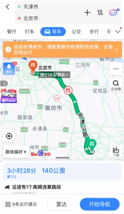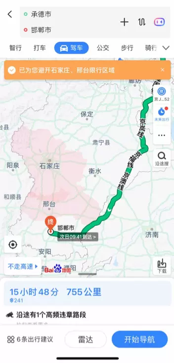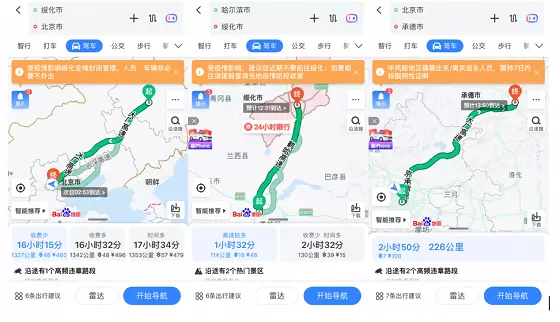 对于驾车用户来说,选择一条避开疫情地区的合理路线,能够为出行加上安全和效率的“双保险”。对此,百度地图上线疫情城市限行规避功能,将在用户行程涉及疫情城市时,优先规划可绕开封闭疫情城市的最佳路线,使用户避免被劝返或滞留当地的尴尬,最大限度保障出行通畅。