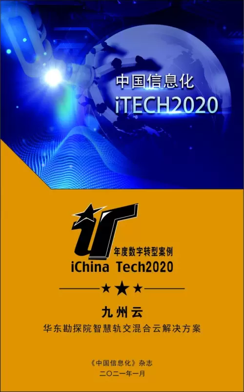 此次会议上,《中国信息化》杂志执行社长熊伟正式发布“iTECH2020”年度事件、年度创新政府、年度成长企业、年度战疫典范、年度领军人物、年度明星产品、年度数字转型、年度新一代信息技术创新产品及案例信息。九州云提交参评的华东勘探院智慧轨交混合云解决方案顺利登榜,并获颁“iTECH 2020年度数字转型案例”。