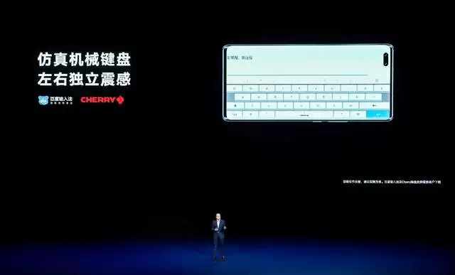 为了打造沉浸式的游戏体验,荣耀V40配备了立体声双扬声器,低音沉稳、高音清亮,为游戏和电影场景带来环绕立体声体验。双线性马达,与多家游戏厂商进行了适配联调,同样能带来沉浸式的真实打击震感。同时,荣耀也和百度输入法、Cherry联合定制了仿真机械键盘,为消费者带来左右独立震感体验。
