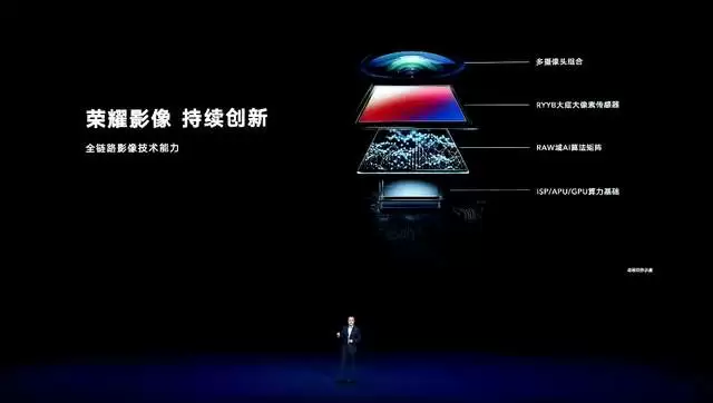 在影像方面,荣耀拥有全链路影像技术实力,从ISP、NPU的算力,领先的RAW域AI算法,到镜头再到传感器,具有大量的技术储备和创新,从整个链路打通了影像技术,让影像实力不断提升。