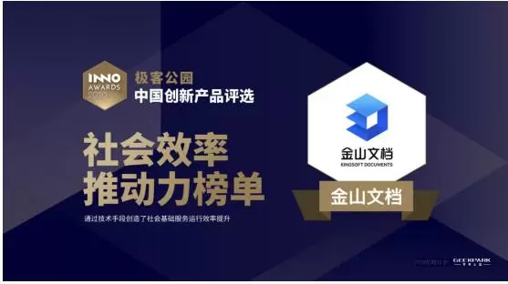 金山文档入选“社会效率推动力”榜单,服务中小微高效协同办公