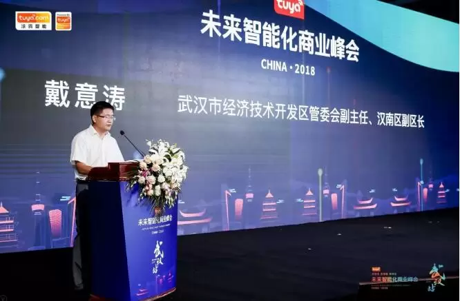 未来智能化商业峰会武汉站由涂鸦智能主办,长江日报和武汉企业联合会联合主办,武汉开发区管委会副主任、汉南区副区长戴意涛、长江日报报业集团副总编辑蔡传雄、武汉企业联合会会长邝培润、武汉企业联合会执行副会长兼秘书长陆永初、武汉建筑装饰协会秘书长李一新等政府、媒体及协会领导出席了本次活动。