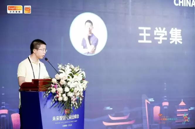 接下来,主办方涂鸦智能创始人兼CEO王学集先生上台致辞。他在致辞中表示,人工智能技术驱动的智能互联网被称为继PC互联网与移动互联网之后的第三次浪潮,智能化在促进消费升级、制造业供给侧改革与一带一路等方面正发挥着越来越重要的作用,对于众多智能设备开发者、制造品牌与生态伙伴来说,这是跨时代的机遇。涂鸦智能作为全球化智能平台与人工智能交互平台,以独创的Tuya.com智能化平台模式,帮助企业快速实现智能化,以享受智能化浪潮的商业红利。
