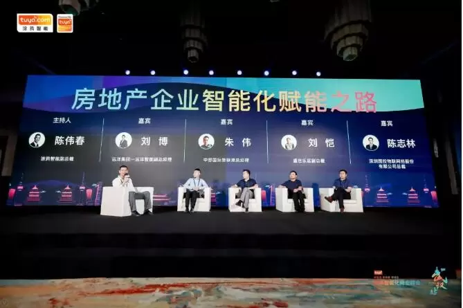 人工智能和物联网技术正在影响和改造各个行业,传统家装行业也在此列。远洋集团远洋智能副总经理刘博,中部国际物联港总经理朱伟,盛世乐居副总裁刘恺,深圳国投物联网络股份有限公司总裁陈志林围绕“房地产企业智能化赋能之路”展开了圆桌讨论,涂鸦智能副总裁陈伟春担任圆桌主持人。