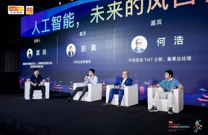 随着人工智能技术的日趋成熟,商业化落地的项目越来越多,资本关注度也越来越高。伟高达联席董事彭真、中信里昂TMT主管何浩、零度资本投资VP李维克围绕“人工智能的未来风口在哪里”进行了圆桌交流,主持人为蝙蝠资本创始合伙人、原阿里战投副总监屈田。