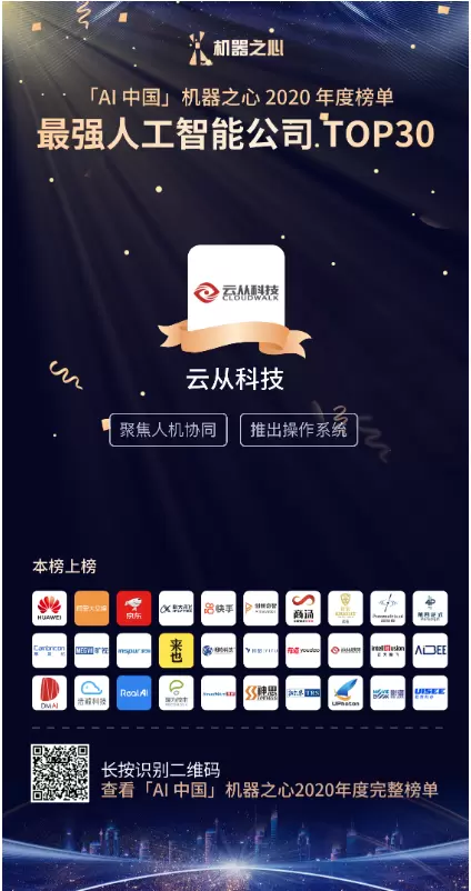 近日,国内领先的人工智能专业媒体和产业服务平台——机器之心公布了“「AI中国」机器之心2020年度榜单”。云从科技凭借技术创新能力与商业落地成果,荣获“最强人工智能TOP30”,这也是云从科技连续第四年入选机器之心年度榜单。